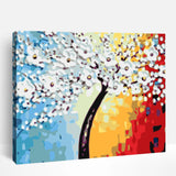 White Flowers and Colorful Background | Paint By Numbers